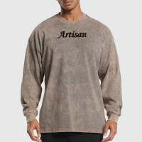 Benutzerdefinierte Hersteller Stickerei Logo Herren Vintage Acid Wash Rundhals T-Shirt